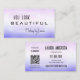 Carte de visite avec un design élégant en lilas avec de la peinture aquarelle. À l'arrière, il y a de l'espace pour votre logo et votre code QR. Belle pour un salon de beauté ou un maquilleur.