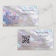 Cet élégant carte de visite de luxe présente un design nacré irisé et une écriture manuscrite élégante. À l'envers, il y a un code qr scannable et un modèle personnalisé pour le nom, l'adresse et les relations sociales. Ce carte de visite glamour professionnel est parfait pour les salons, les maquilleurs, les bijoux et plus encore.