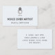 Ces cartes de visite simples et élégants seraient parfaits pour la voix contre l'artiste ou toute autre profession de votre choix. Ajoutez facilement votre propre nom en cliquant sur l'option "personnaliser ce modèle". Si vous avez des questions ou des demandes concernant la conception, n'hésitez pas à nous contacter.