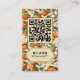 Illustration Persimmons. Fruits, fleurs et feuilles sur branches. Couleur arrière - plan personnalisée. De nombreux champs de texte personnalisables à l'avant. Motif sans faille, icônes d'identification sociale et code QR à l'arrière.