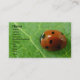 Ce carte de visite de jardiniers mignon présente une photo de gros plan d'un coccinelle britannique de 7 places assise sur une feuille. La photo a été prise directement au-dessus de la coccinelle à l'aide d'une macro photographie, ce qui donne une image si détaillée que vous pouvez voir toutes les veines sur la feuille sur laquelle la coccinelle est assise. La photographie est sur le devant du carte de visite, accompagnée d'un texte noir personnalisable. Il y a une version agrandie de la photo à l'arrière du carte de visite. Ce carte de visite a été conçu pour les jardiniers, mais il convient aussi à d'autres entreprises.
