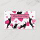 "Montrez votre amour pour les amis félins avec notre charmant carte de visite de la chatterie. Doté d'un charmant motif de coeur rose et décoré d'une élégante silhouette de chat noir, cette carte est la façon parfaite de capter l'attention et de transmettre votre passion pour les chats."