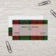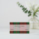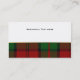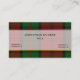 Carte de visite à carreaux élégante réalisée dans le motif traditionnel tartan du clan Dunbar en vert, rouge et noir. L'avant de la carte comporte une bande blanche semi-transparente à bordure de ton doré, au milieu de la carte, avec du texte vert et noir personnalisé. Le verso de la carte est blanc, avec une bande à carreaux en bas et du texte noir sur la partie blanche. Personnalisez tout le texte en fonction de vos besoins. Carte de visite élégante et professionnelle.