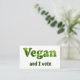 Montrez votre fierté végétalienne et votez votre style de vie et vos valeurs. Proclamez votre activisme végétalien en promouvant un régime sans animaux et d'autres choix sains pour les politiciens et autres électeurs cette saison électorale. Assurez-vous que vos questions sont traitées par les élus en leur faisant savoir où vous vous situez politiquement aussi bien que personnellement. Vous pouvez customiser ce produit en changeant facilement la ligne d'étiquette "et je vote" pour le faire dire ce que vous voulez. Utilisez simplement la fonction personnalisée. Si vous voulez aller plus loin, comme changer de police ou de couleur arrière - plan, ajouter plus de lignes de texte ou le logo de votre organisation, etc., vous avez une totale liberté en customisant le produit.
