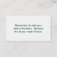 Carte De Visite Petite entreprise ivoire Weathervane