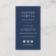 Des cartes de visite verticaux élégants pour votre entreprise côtière présentent une illustration de phare aquarelle en bleu et vert nautique, avec votre nom et/ou nom d'entreprise en dessous. Personnalisez l'envers avec vos coordonnées, y compris trois icônes de médias sociaux et un champ de modèle pour votre nom d'utilisateur de médias sociaux, en blanc sur bleu marine.