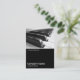 Une conception de modèle de carte de visite avec une moitié inférieure noire bordée blanche. La conception avant inclut une photo ou une illustration dans la moitié supérieure. Le même thème est répété sur le dos sans image, permettant la pièce pour d'autres détails et davantage de personnalisation. Le motif de trois carrés utilisé comme caractéristique décorative sur le dos est d'une de polices utiles de l'image de Zazzle et peut être employé comme caractéristique décorative ou être remplacé par votre propre logo ou décoration.