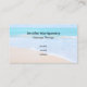 Cartes de visite professionnels avec une photo d'une scène océanique bleu clair avec des vagues douces le long d'un bord de mer et du sable brun doux. Un ciel bleu avec des nuages moelleux au loin. Un paysage marin tropical idyllique.