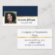 Ce carte de visite professionnel présente un design élégant aux accents dorés sur un arrière - plan bleu marine. Un exemple de photo à gauche du nom et du titre du poste. Le nom est imprimé dans une police de script qui ressemble à l'écriture manuscrite. Le verso de la carte contient les coordonnées et des informations complémentaires.