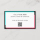 Carte De Visite Photo Black Hot rose Turquoise Code QR