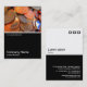 Un modèle de carte de visite avec une moitié inférieure noire bordée de blanc. Le design avant comprend une photo ou une oeuvre d'art dans la partie supérieure. Le même thème est répété à l'arrière sans l'image, permettant la place pour d'autres détails et une personnalisation plus poussée. Les trois motifs carré utilisés comme élément décoratif sur le dos proviennent d'une des polices d'image utiles de Zazzle et peuvent être utilisés comme élément décoratif ou remplacés par votre propre logo ou décoration.