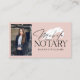 Carte de visite photo portable moderne et élégant. Le design comprend une photo, un script de typographie "notaire mobile" et un nom sur le devant. Personnalisez-vous avec vos coordonnées, les médias sociaux et le code qr à l'arrière.