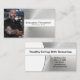 L'acier brossé Faux démarre l'arrière - plan de ce design carte de visite avec un espace réservé photo sur la gauche avec le nom et le titre du modèle sur la droite. Le dos comprend une conception et des couleurs coordonnées avec des champs de texte pour le nom commercial et les détails. Remplacez l'espace réservé par votre photo au format vertical. Remplissez les champs du modèle, supprimez du texte ou cliquez sur personnaliser pour sélectionner un style de police, une taille et une couleur que vous souhaitez.La photo de l'espace réservé est fournie par pexels.com.