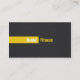Ce carte de visite moderne, élégant et frais utilise une palette de couleur de noir, de blanc et de jaune. Noir et blanc lui fait le professionnel et intemporel tandis que les contacts du jaune comprenant le coutil jaune donne un sens d'énergie et de la positivité qui est si nécessaire pour la formation de forme physique. L'arrière - plan noir a une texture rocailleuse subtile à lui. Perfectionnez pour les éducateurs, les instructeurs de forme physique et n'importe qui personnels indépendants dans l'industrie de forme physique qui souhaite communiquer ces qualités à leurs clients. L'espace pour la personnalisation de photo qui s'ajoute à la crédibilité et à la connexion personnelle avec les clients potentiels.