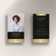 Un design moderne, simple et élégant, avec un arrière - plan noir et une bande dorée. Ce carte de visite photo est parfait pour les agents immobiliers, les stylistes, les gestionnaires immobiliers, les agents immobiliers et d'autres dans l'industrie de la gestion immobilière. Aussi pour les professionnels de la finance, les professionnels de la santé et PDG, CFO ou les dirigeants de toute industrie.
