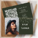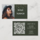 Carte de visite personnalisable dans les tons vert de forêt émeraude avec effet imprimé parties scintillant or, avec photo et nom, adresse, site web et détails des médias sociaux. Générer un nouveau code QR qui renvoie à votre propre site en cliquant sur "personnaliser ce modèle" Ajoutez votre adresse URL et un code QR sera généré pour vous.