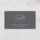 Les cartes de visite élégants pour photographes disposent d'un objectif photo abstrait en or faux rose, encerclant vos initiales ou monogrammes dans un script de calligraphie blanc moderne sur un arrière - plan gris moyen raffiné. Personnalisez avec deux champs de texte personnalisés en dessous de votre nom et titre ou nom commercial. Ajoutez vos coordonnées complètes au verso en lettres grises sur blanc.
