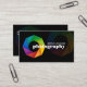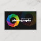 © Socialite Designs. Conception de carte de visite de photographie à obturateur coloré. L'élément coloré, y compris le filigrane, peut être déplacé et redimensionné sur la carte de visite. Choisissez une couleur de fond et un style de police différents.
