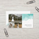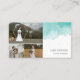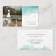 Carte de visite plat pour un photographe professionnel, où vous pouvez présenter votre travail dans un collage photo avec la place pour trois de vos photos. Ajoutez votre nom et votre spécialité ou titre ou service sur la couverture sous un éclat d'aquarelle en turquoise parsemé d'un faux bec doré. Ajoutez vos coordonnées au verso. Un carte de visite élégant et minimaliste, parfait pour un photographe mariage.