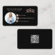 Carte de visite photo de l'agent immobilier Blush Pink and Black, moderne et professionnel. Le design présente votre photo, logo or, nom et coordonnées sur le devant. Personnalisez davantage avec votre code qr.
