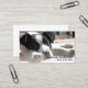 Ce devant carte de visite présente une photo remplaçable de mignon chiot noir et blanc allongé. Personnalisez le modèle, supprimez tout texte ou utilisez l'outil de conception de modification pour sélectionner le style, la taille et la couleur de police que vous préférez. Conservez ou remplacez la photo du chiot par une image horizontale pour répondre à la nécessité de promouvoir votre entreprise. Utilisez le code QR pour envoyer des clients potentiels vers des références, des avis, des photos ou d'autres liens professionnels. Photo de Patricia AZ Phillips.