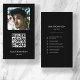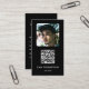 Un carte de visite personnalisé minimaliste moderne noir pour toute personne désirant placer une photo sur le devant de son carte de visite. Une façon simple et professionnelle de présenter votre entreprise, entreprise ou entreprise présence. Personnalisez l'avant du carte de visite avec votre photo et ajoutez le code QR et les détails sur l'envers. Créez votre propre carte de visite unique et élégant. Les icônes de médias sociaux incluses dans la conception de ce carte de visite pour vous à utiliser.