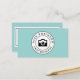 Carte de visite moderne rétro avec un logo circulaire noir et blanc sur le devant sur un arrière - plan bleu. La couleur de l'arrière - plan peut être changée en n'importe quoi qui correspond à votre entreprise. Ce serait parfait pour un photographe mariage, un studio de portrait ou toute personne qui travaille avec un appareil photo.