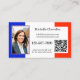 Carte de visite avec vos photos personnalisées avec le drapeau français comme arrière - plan sur le devant. Sur le dos, il y a de l'espace pour une autre photo et aussi un modèle de code QR. Belle pour un enseignant de langue française ou personnalisable par exemple une agence de voyage proposant des voyages en France.