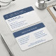 Present a professional, trustworthy image with this upscale minimalist medical business card. This design features a striking classic navy blue and white palette for a clean, elegant look with the template option to turn on gold shimmer accents. The front provides clear hierarchy with a bold title block and essential contact information. The back is designed for maximum function and conversion, clearly listing services and conditions in a scannable, structured format. perfect for physicians, family practitioners and clinic owners who require an elegant, modern and professional representation of their brand.