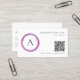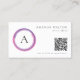 Carte De Visite Pink and Purple Monogram QR Code Modern