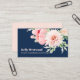 Ce design carte de visite moderne et sophistiqué présente une illustration séduisante d'un dahlia rose vif et de fleurs de pivoine rose intense sur un arrière - plan bleu chic avec un nom ou un nom d'entreprise et titre audacieux.
