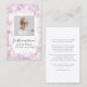 Merci à vos invités d'avoir assisté au service de célébration de la vie de votre défunt avec la jolie carte de prière funéraire Pink Hydrangea Watercolor Funeral. Personnalisez-le avec une photo, des dates de naissance et de mort et un poème ou une prière sur le dos. Cette élégante carte d'hommage à la mort fleurie présente une numériquement photo florale peinte en aquarelle de fleurs d'hydrangée rose pâle clair avec un arrière - plan blanc.