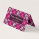 This elegant and modern business card features a pink and white plaid background. The text combines modern sans serif fonts for a classy and sophisticated look.