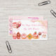 Sweet, soft, and irresistibly charming—this pink watercolor bakery business card is perfect for bakers, home bakery owners, dessert businesses, and pastry shops. Featuring adorable hand-painted cupcakes, donuts, cake pops, waffles, and cookies in a delicate blush watercolor style, this design instantly communicates warmth, creativity, and delicious treats.