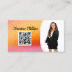 Cette aquarelle orange de ce design carte de visite comporte un espace réservé photo à droite et QR Code et le nom du modèle à gauche. L'arrière comprend une conception et des couleurs coordonnées avec des champs de texte pour le nom commercial et les détails. Remplacez l'image de l'espace réservé par votre photo au format vertical et votre code QR à l'avant. Remplissez les champs de personnalisation ou cliquez sur personnaliser pour sélectionner un style, une taille et une couleur de type que vous souhaitez.L'image de l'espace réservé est fournie par pixabay.com.
