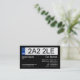 Modèle de carte de visite avec panneau Numéro/Plaque de licence de style UK/EU. Idéal si vous avez un nom d'entreprise qui s'adapte sur une plaque numérique. L'arrière de la carte contient la version arrière jaune de la plaque numérique pour le nom de votre entreprise et l'espace pour des informations supplémentaires. Particulièrement adapté aux entreprises automobiles, location de voitures, services de taxi, etc.