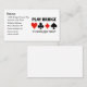 Montrez votre sens de l'humour du pont en double avec ce carte de visite personnalisable avec les costumes à quatre cartes et le dicton "Play Bridge C'est moins cher que la thérapie". Faites les autres faire un double-prendre la prochaine fois que vous jouez pont avec ce pont mémorable disant carte de visite! Pas besoin d'être un passionné de bridge pour profiter de vous présenter avec ce carte de visite d'attitude de pont!