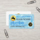 Cover features a leaking "plumber" pipe frame in flooded waters. The pipe frame is accentuated by a gold faucet and a leaking pipe icon. Over at the top lies your prestigious name with the contact details near the base of the card.