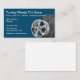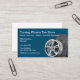 cartes de visite automobiles cool conçus avec un pneu de voiture et chrome graphique de roue vous pouvez customiser en ligne en remplaçant notre texte par vos informations professionnelles. Créé pour un magasin de pneus neufs ou usagés, un service d'assistance routière ou un atelier de réparation automobile.