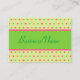 Des points de couleur clairs décorent ce carte de visite de style rétro. Customisez la carte pour répondre à vos besoins, ajouter ou supprimer des informations etc...Utilisez ces cartes de visite pour une entreprise, avocat, consultant, éducation, éducateur, golf, golf, golf, golf, golf, aménagement paysager, soin de pelouse, entrepreneur, programmeur, tuteur, musicien, artiste, peintre, styliste, garderie, préscolaire, fleuriste, boulangerie, designer, barbier, comptable, restaurant , boutique, etc...