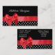 Carte De Visite Pois noir et blanc et graphique rouge de ruban