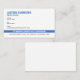 Cette conception comporte un thème de drapeau de la police avec une mince bande bleue. Customisez avec le nom, le poste et les coordonnées de l'agent d'application de la loi, du shérif, du capitaine, du chef ou de tout employé travaillant au service de police. L'arrière - plan blanc solide à l'arrière permet à un officier d'avoir un espace supplémentaire pour écrire une petite note si nécessaire.