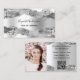 Argent à l'aspect métallique et agate, impression de pierre de marbre. Personnalisez et ajoutez votre nom et votre texte à l'avant. Retour : Modèles pour votre photo de profil, nom, titre, numéro de téléphone, adresse postale et de site, QR-code. Parfait pour les femmes entrepreneurs, consultants, propriétaires d'entreprises.