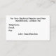 Une carte de visite pour électriciens où le texte peut être modifié pour répondre à leurs besoins et le verso comporte des schémas de câblage pour les interrupteurs à trois et quatre voies.