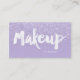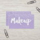 Un carte de visite moderne, de maquilleur de styliste avec la typographie moderne de brosse de style de lettrage de main dans le blanc sur des parties scintillantes pourpres de faux élégant et un arrière - plan en pastel de pourpre de lavande.