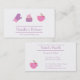 Laissez une impression avec des clients avec ce carte de visite élégant, élégant, doux, minimaliste, contemporain et moderne de boulangerie dans la palette de couleur de rose féminin et du pourpre. La conception a 3 cercles chacun avec un article de cuisson qui inclut une mitaine pourpre de four, un petit gâteau de regard délicieux avec le givrage rose décoré de mini coeurs et un bol mélangeur rose avec battent. Perfectionnez pour des boulangeries, des chefs de pâtisserie, des décorateurs de gâteau, des cafés, des café-restaurants et des endroits, des entreprises de confiserie, des studios de cuisson, cuisson et des maîtres d'école et plus de cuisine. Personnalisez facilement avec des détails d'affaires.