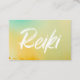 * A conçu pour vous par la Maîtrise de Reiki Anna Rosa...Soft Gentle Energy Healer Reiki Praticien ou Carte de visite Master Avec une aquarelle Artsy Beau Extraordinaire Jaune profond, or, Pêche et arrière - plan Turquoise * Ce design est abstrait, doux, girly chic & féminin aussi fort. C'est un excellent choix pour quelqu'un à la recherche d'une carte Reiki qui soit artistique, abstraite et moderne, ainsi que joli, beau, chic et artistique pour leur marque Reiki Master ou Reiki Praticien.Le texte de typographie blanc Reiki est sur un abstrait artistique moderne chic chic et fascinant aquarelle artistique unique couleur or jaune turquoise et arrière - plan pêche.