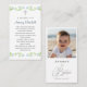 Cette conception présente une aquarelle illustrant le bleu et le vert floral du motif avec croix grise sur le dessus de la carte. Au contraire, vous pouvez mettre votre photo bébé.
