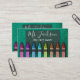 La parties scintillant de Faux scintille derrière une série de crayons colorés disposés dans un motif arc-en-ciel. Mettez facilement à jour le nom, le titre du travail et les informations de contact sur l'avant et l'arrière. Le script et les polices du tableau de bord sont utilisés pour imiter la classe d'un enseignant. Disponible dans de nombreuses autres couleurs brillantes. Idéal pour les enseignants suppléants, les enseignants d'âge préscolaire, les professeurs, les éducateurs, les garderies, et les centres de garde après l'école.