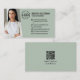 This sleek and simple square business card is perfect for corporate brands, small businesses, consultants, freelancers, or any professional looking for a modern, clean aesthetic. The design features sage green backgrounds on both sides for a soft, refined look. The front of the card includes your photo, company logo, name, title or business name, and contact information in clean, easy-to-read fonts, creating a professional yet personalized touch.